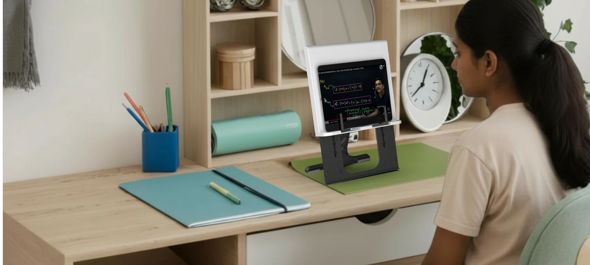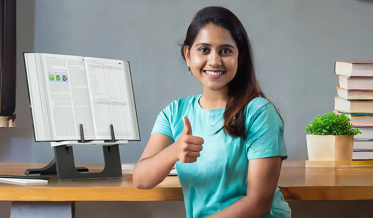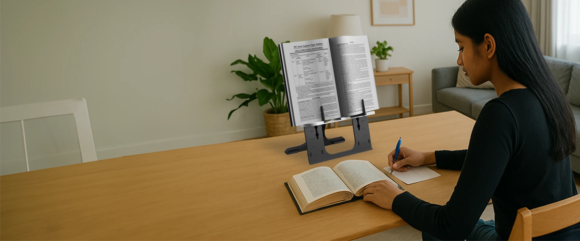 EasyRead Plus is designed specifically for students and competitive exam takers. Unlike basic stands, it offers height adjustment, ergonomic angles, sturdy build quality, and smart features that help reduce neck strain and improve focus during long study sessions.