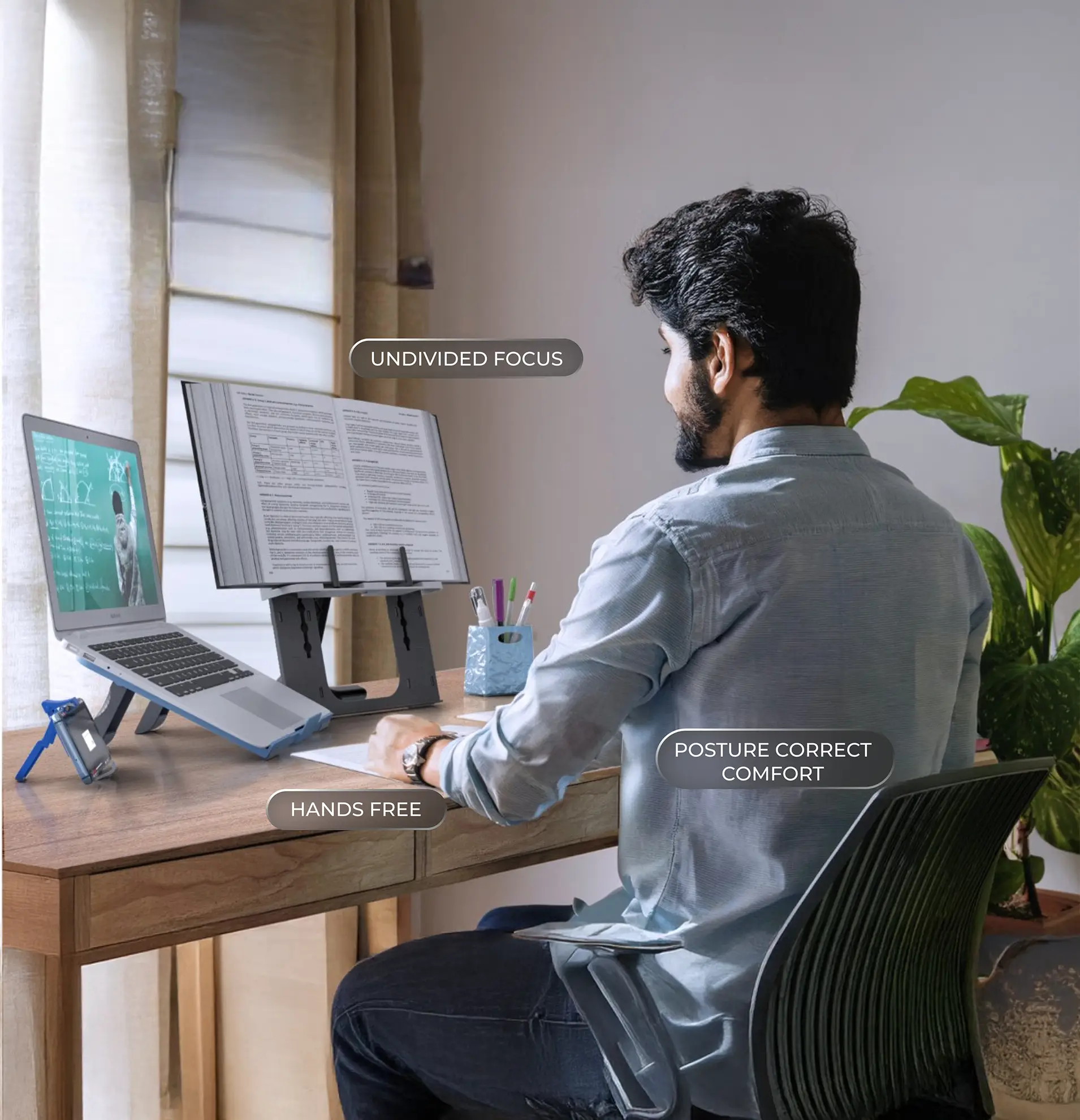 Keep books and tablets at the ideal angle to reduce eye strain, headaches, and posture issues caused by long hours of studying.